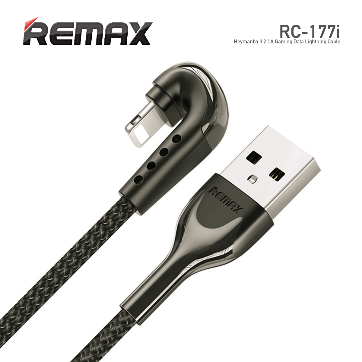Remax Heymanba II 2.1a Usb To Lightning 180 Degrees Elbow Zinc Alloy Braided Gaming Data Cable #RC-177i