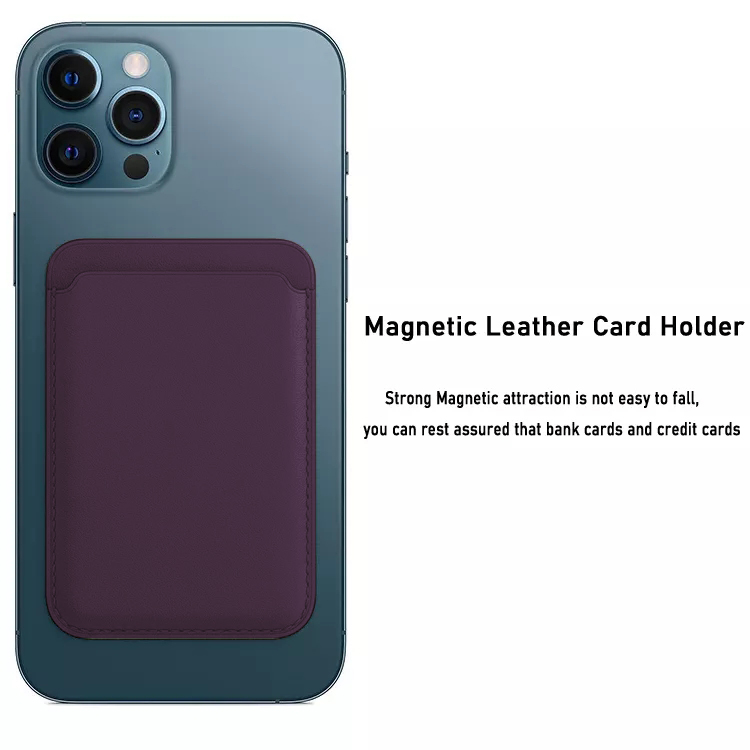 MagSafe Leather Magnetic Card Wallet Holder For iPhone-Dark Purple