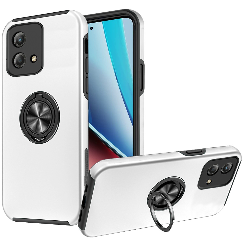 For Motorola G Stylus 5G (MultiCarrier 6.6" 16MP Camera) 2023 CHIEF Oil Painted Magnetic Ring Stand Hybrid Case Cover - Silver