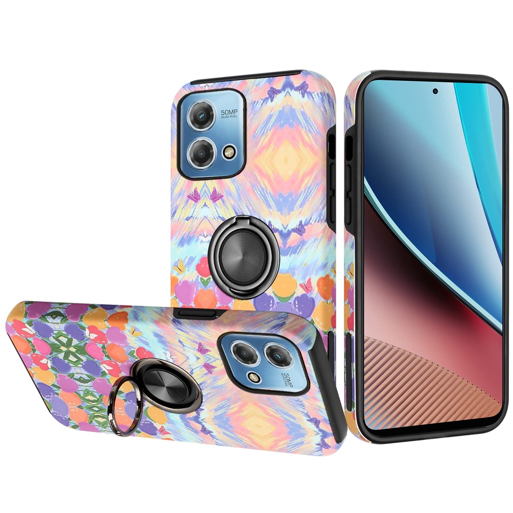 For Motorola G Stylus 5G (MultiCarrier 6.6" 16MP Camera) 2023 Sketch Design Hybrid Magnetic Ring Sand Case Cover - D