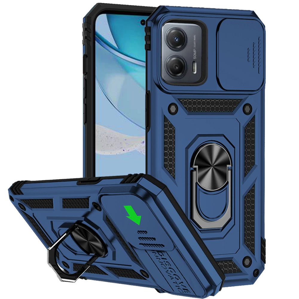 For Motorola MOT G 5G 2023 Well Protective Magentic Ring Stand Camera Protective Cover Case - Blue