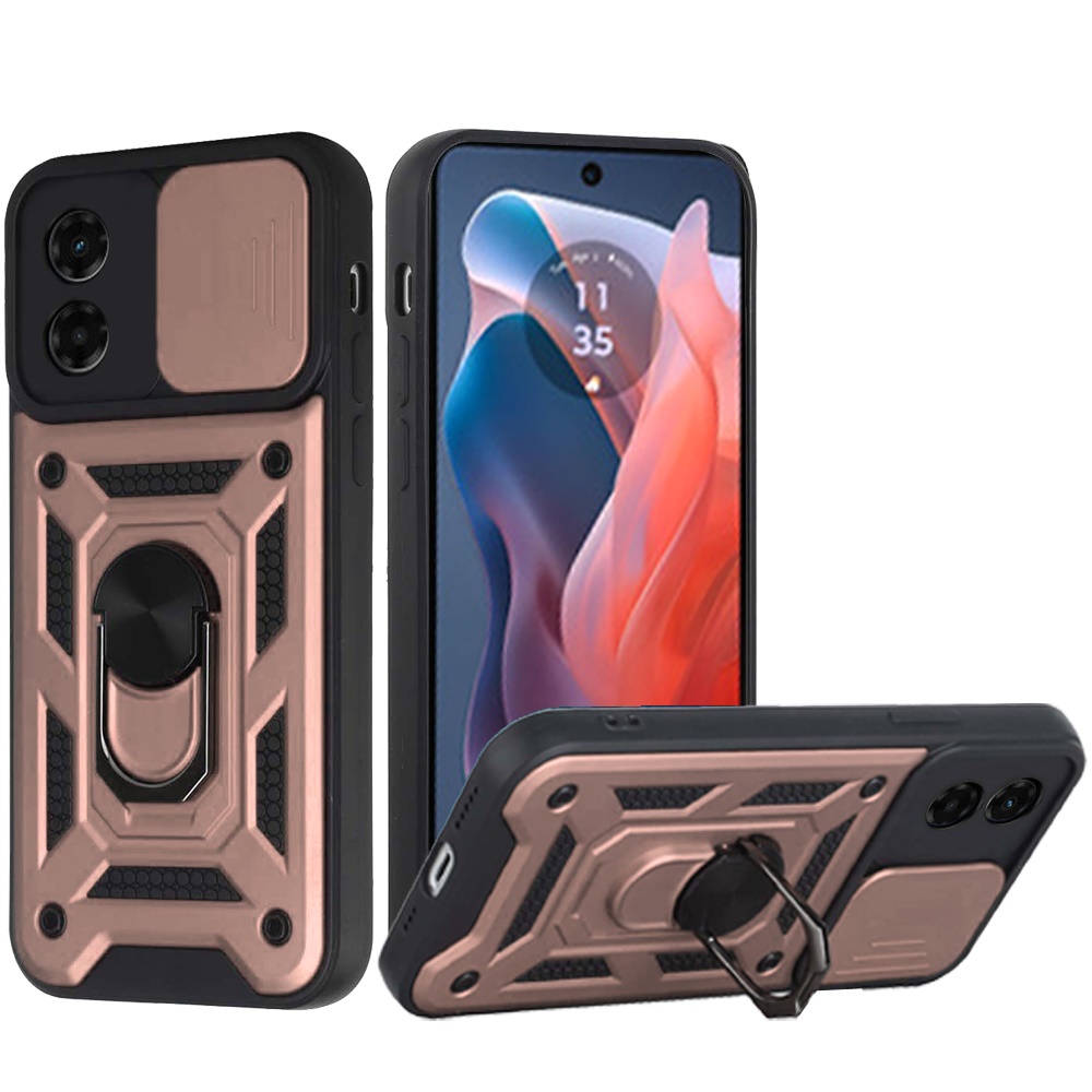 For Motorola Moto G Play 2024 ELITE Camera Push Magnetic Ring Stand Hybrid Case Cover - Rose Gold