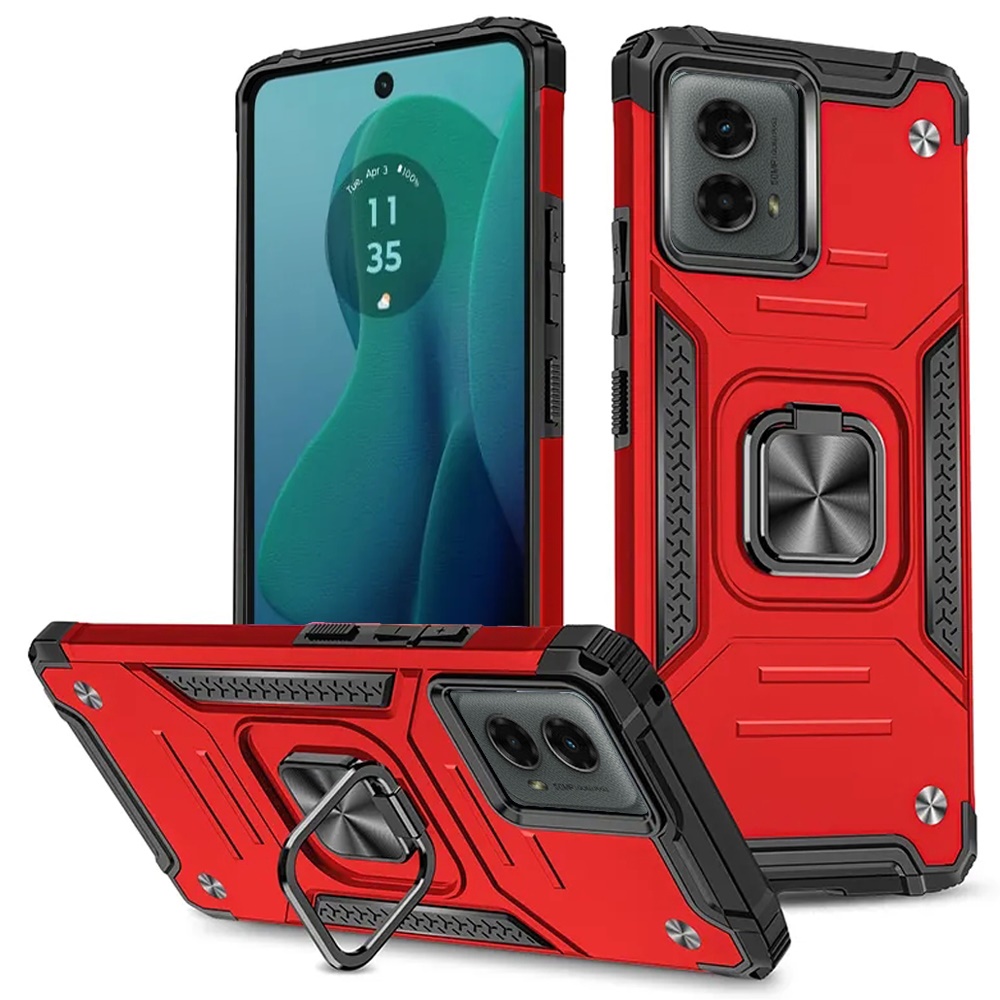 For Motorola Moto G 5G 2024 Robust Magnetic Kickstand Hybrid Case Cover - Red