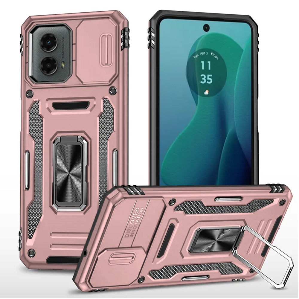 For Motorola Moto G 5G 2024 Utter Tough Metal Ring Movable Camera Window Hybrid Case Cover - Rose Gold