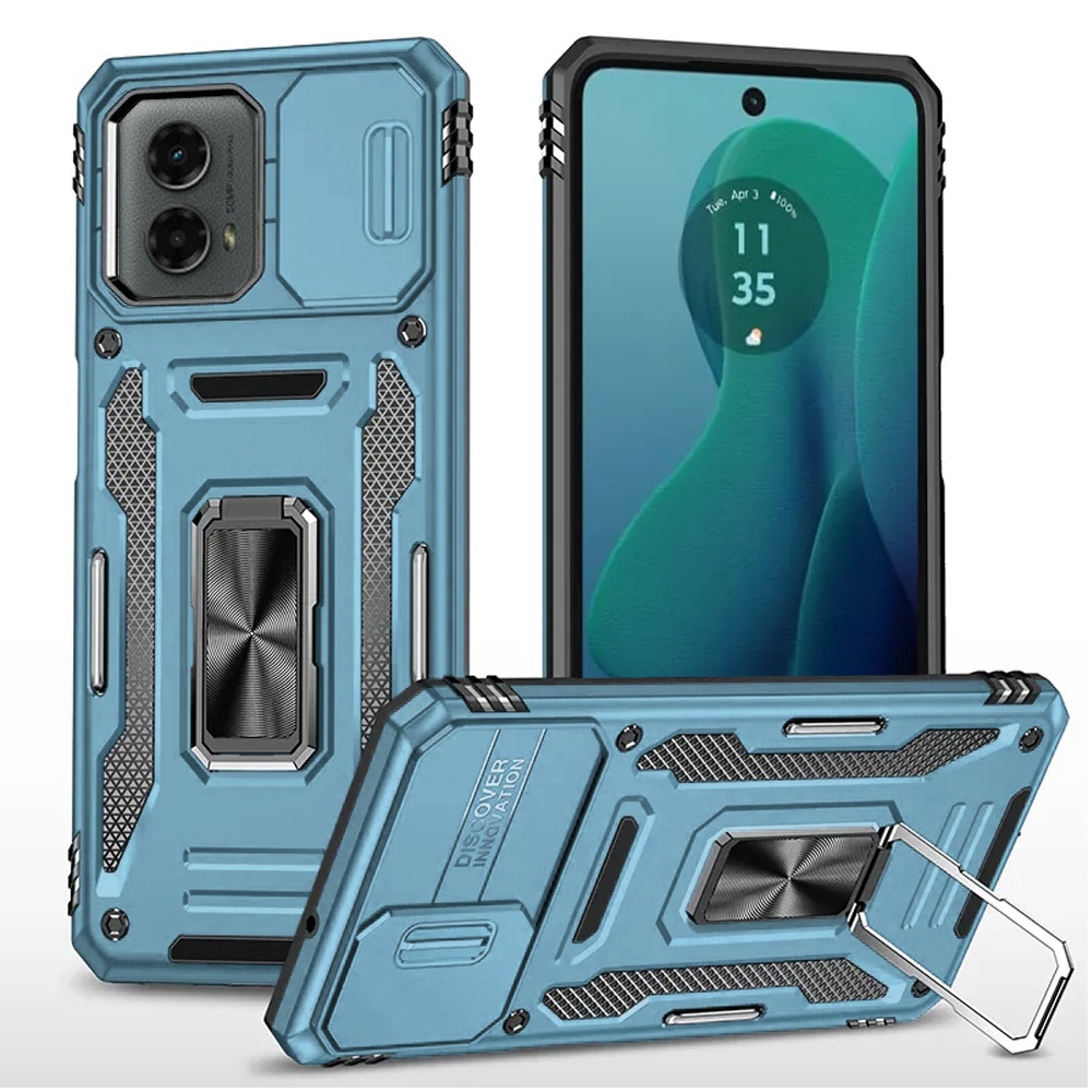 For Motorola Moto G 5G 2024 Utter Tough Metal Ring Movable Camera Window Hybrid Case Cover - Light Blue