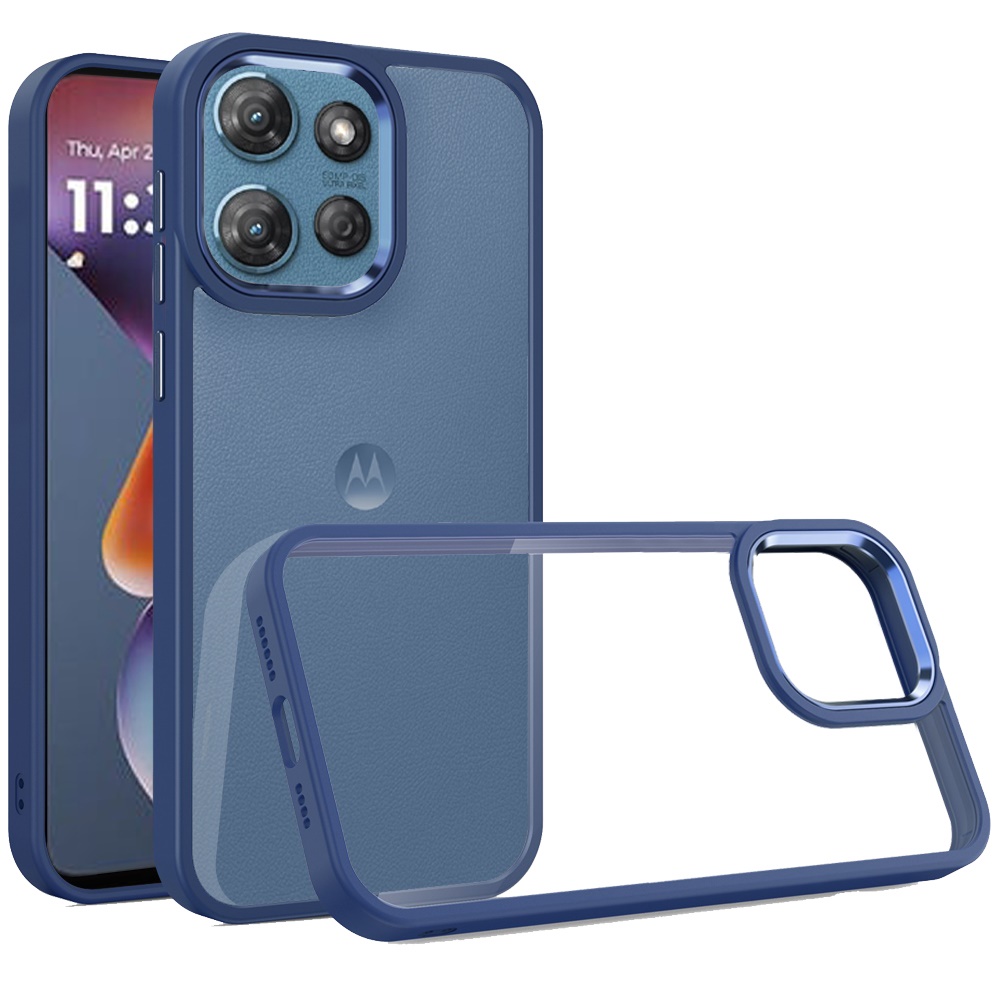 For Motorola Moto G 5G 2025 Finest Transparent Thick Acrylic Hybrid Metal Buttons Cover Case - Blue