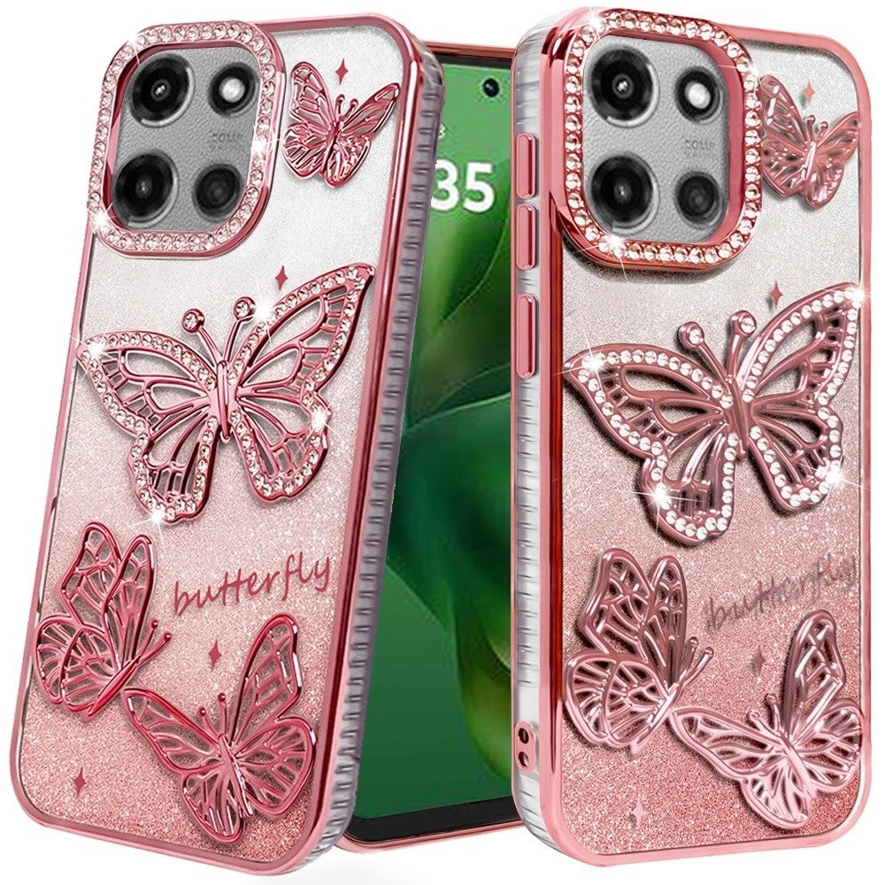 For Motorola Moto G Power 5G 2025 Butterfly Freedom Shimmer Glitter Thick TPU Case Cover - Rose Gold