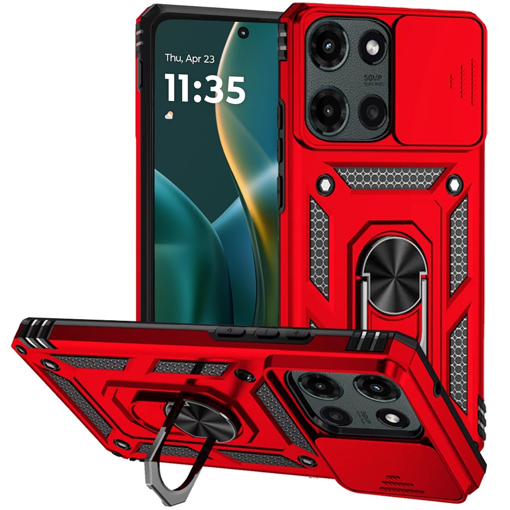 For Moto G Stylus 5G 2025 Well Protective Magentic Ring Stand Camera Protective Cover Case - Red