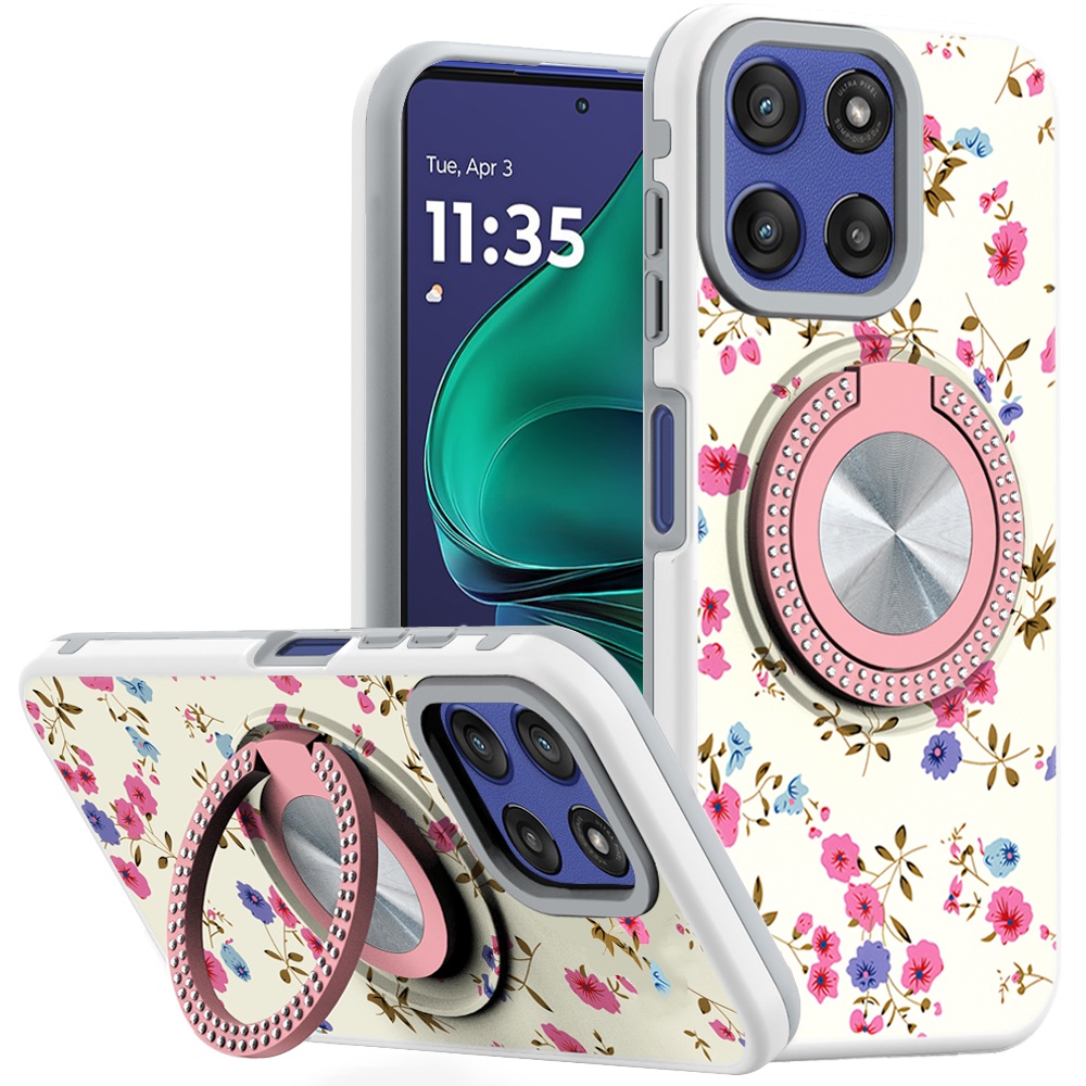 For Moto G Stylus 5G 2025 Metal Diamond CD Pattern Design Matte Finished Hybrid with Rotational Ring [Car Mount Friendly] Case - 8