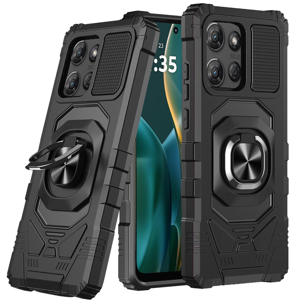 For Moto G Stylus 5G 2025 Robotic Hybrid with Magnetic Ring Stand Case Cover - Black