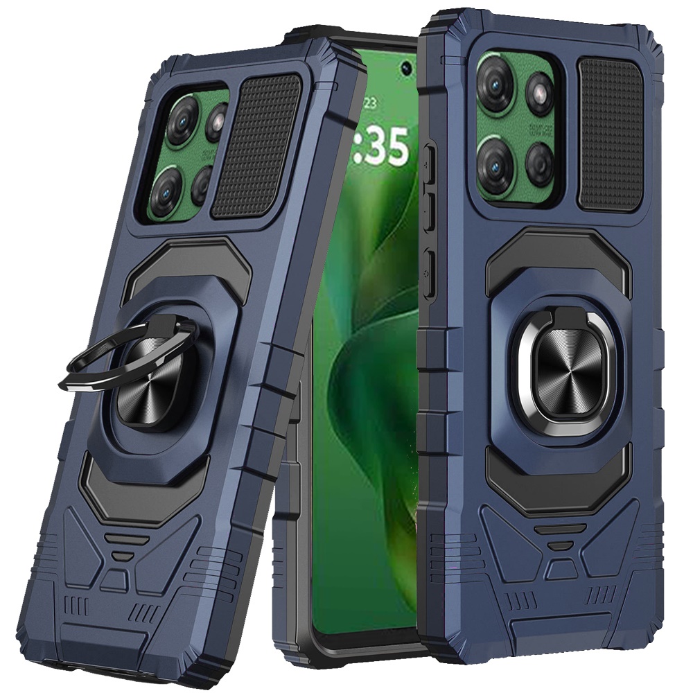 For Motorola Moto G Power 5G 2025 Robotic Hybrid with Magnetic Ring Stand Case Cover - Dark Blue