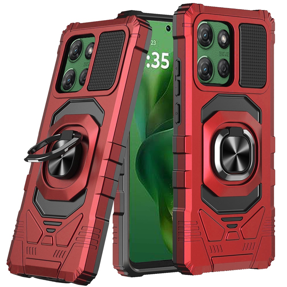 For Motorola Moto G Power 5G 2025 Robotic Hybrid with Magnetic Ring Stand Case Cover - Red