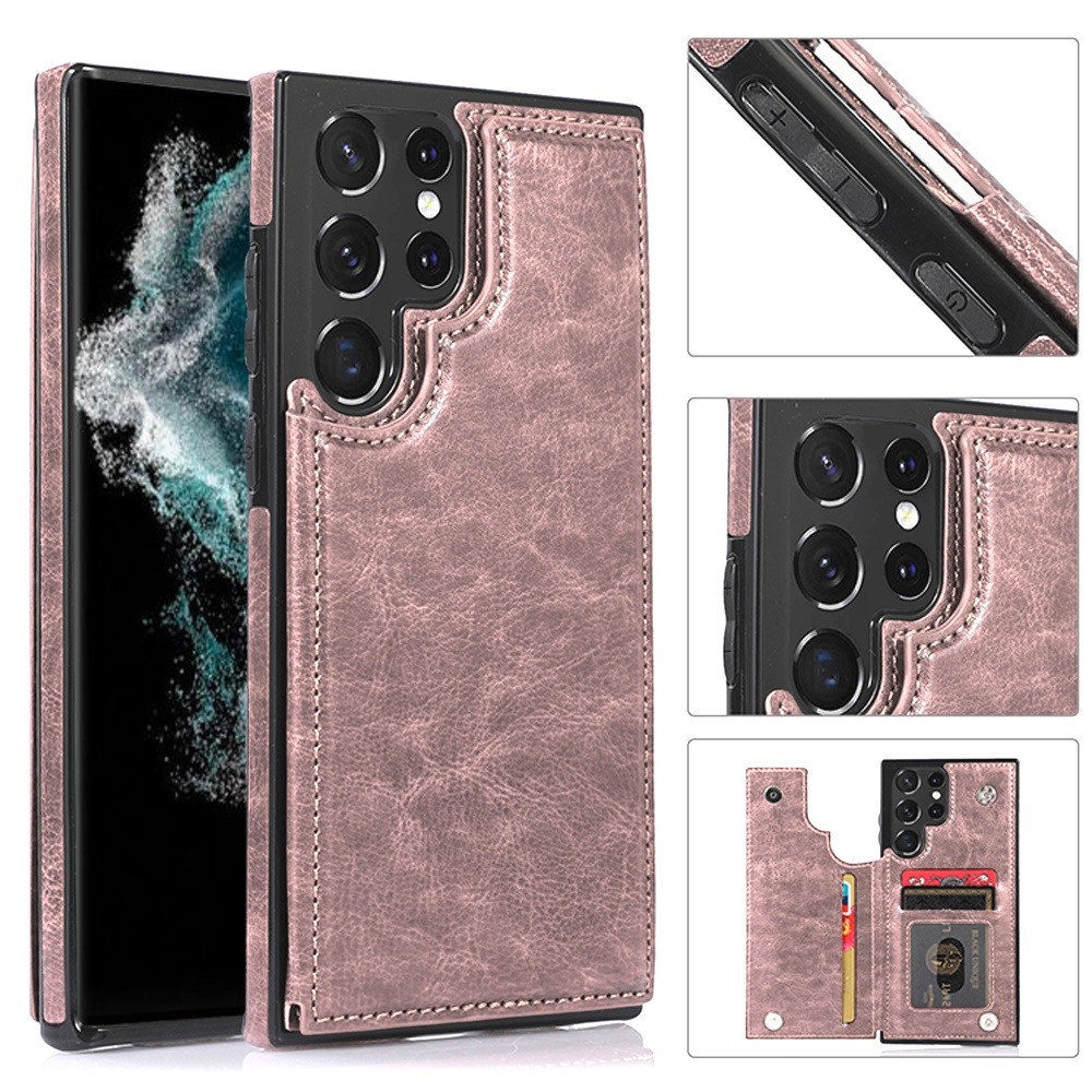 For Samsung S23 Luxury Side Magnetic Button Card ID Holder PU Leather Case Cover - Rose Gold