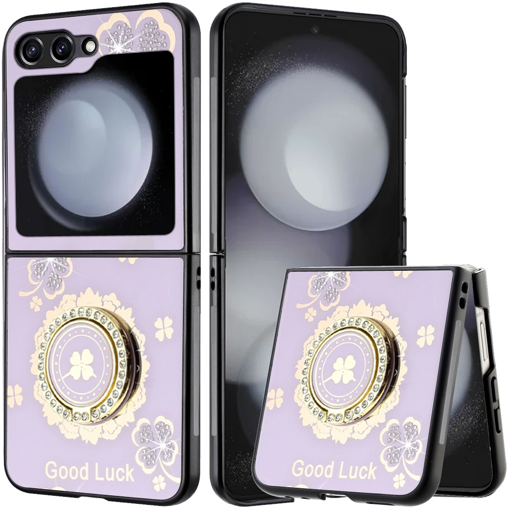 For Samsung Z Flip 6 SPLENDID Diamond Glitter Ornaments Engraving Case Cover - Good Luck Floral Purple