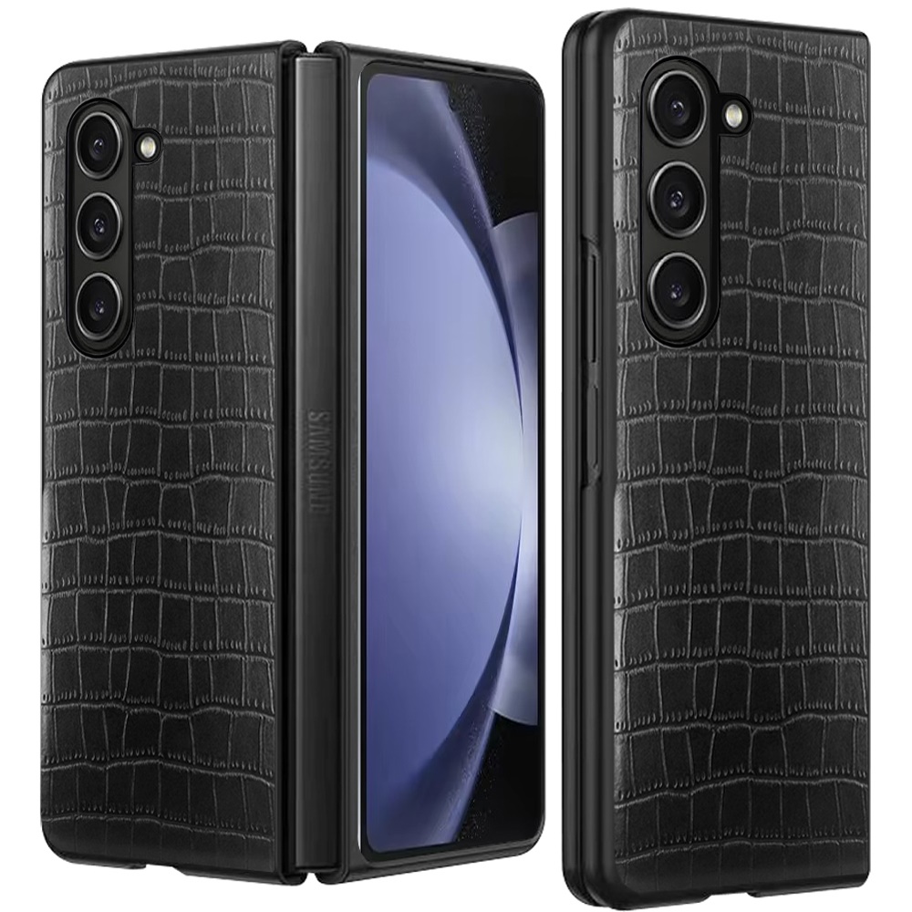 For Samsung Z Fold 6 PU Vegan Leather Premium Hard Snap On Case Cover - Black