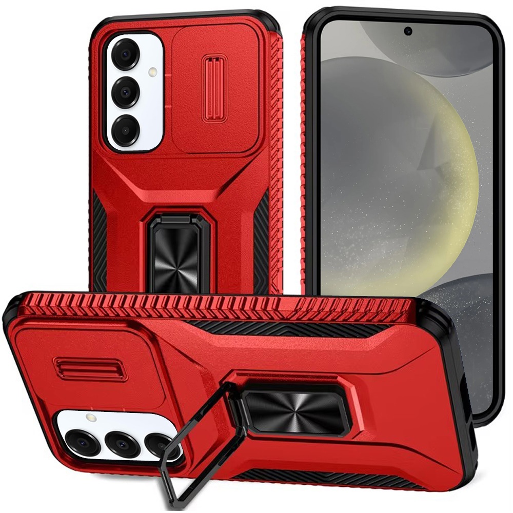 For Samsung s25 Plus/s24 Plus Complete Magnetic Metal Ring Stand Camera Protection Hybrid - Red