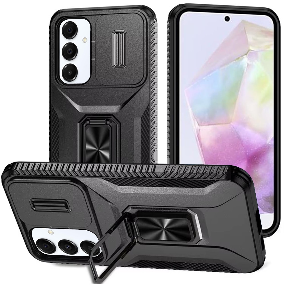 For Samsung Galaxy A36 Complete Magnetic Metal Ring Stand Camera Protection Hybrid - Black