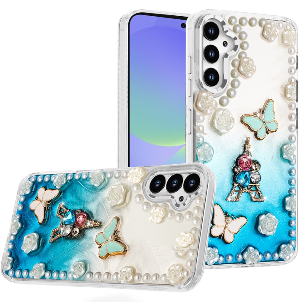 For Samsung Galaxy A36 / A56 Pearls Epoxy Glitter Ornaments Design Chrome E