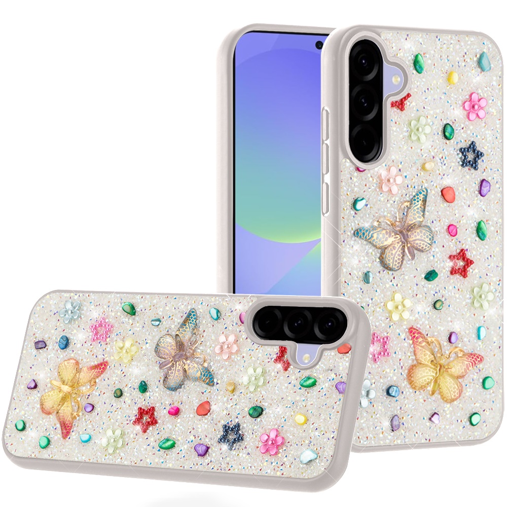 For Samsung Galaxy A36 / A56 Butterfly Ornaments Diamond Bling Glitter Hybrid Case - White