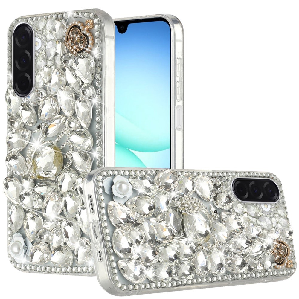 For Samsung A17 5G Full Diamond with Ornaments Case Cover - Silver Swan Crown Pearl