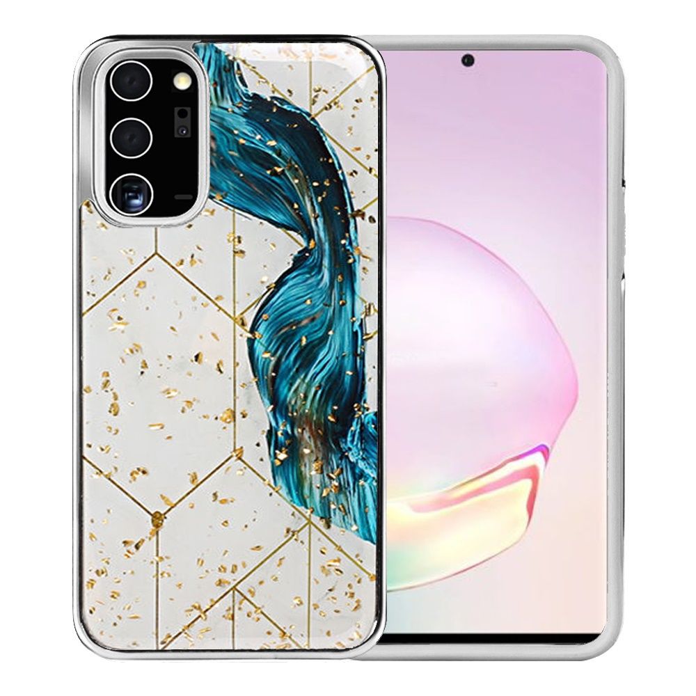 Luxury Glitter Design on ShockProof Armor Hybrid Case For Samsung Galaxy Note 20 Ultra - Blue Swirl