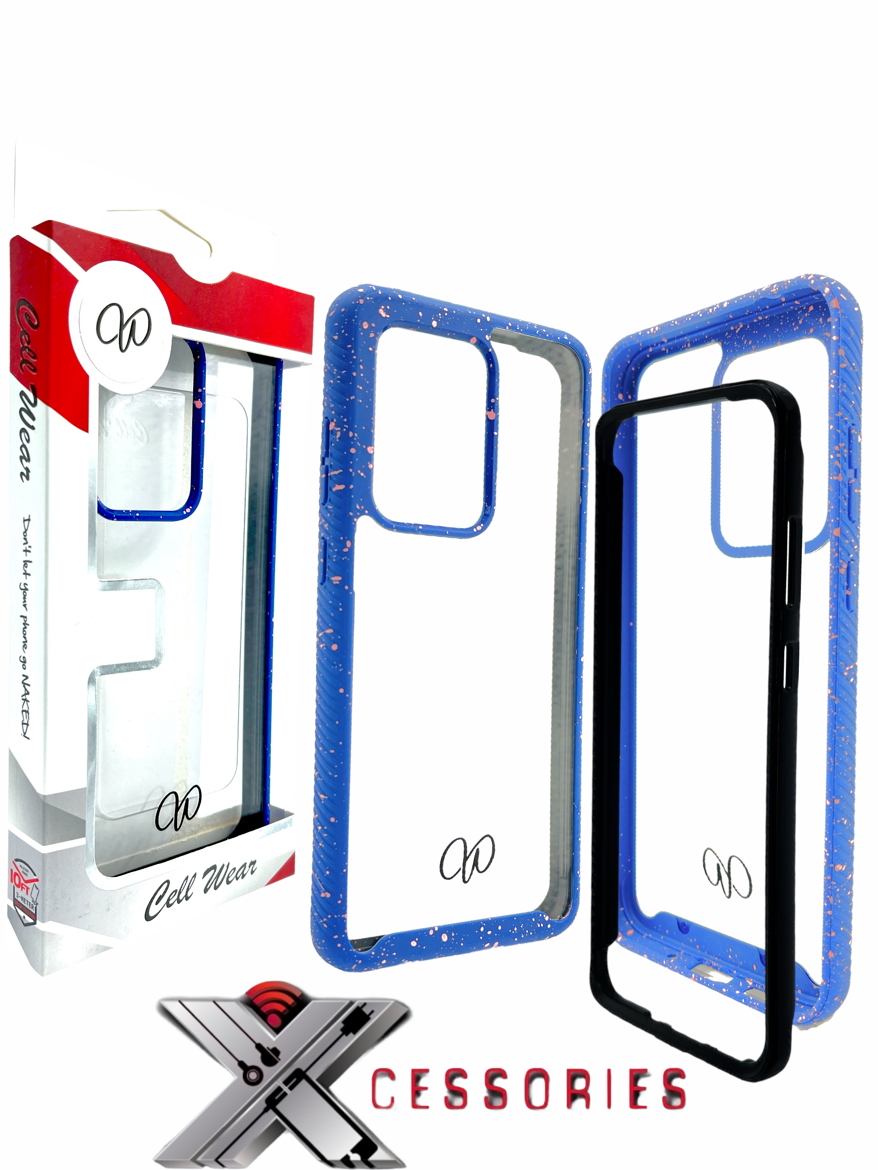 2 Piece Shock Proof Transparent Case for Samsung Galaxy S20 Ultra - Clear/Blue