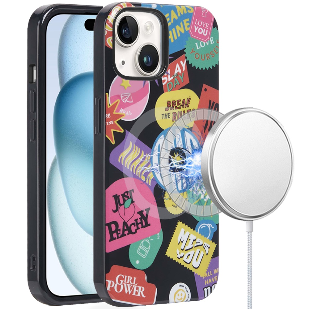 For iPhone 15 [Magnetic Circle] Double Layer Design IMD TPU Case - Fashion Rebel