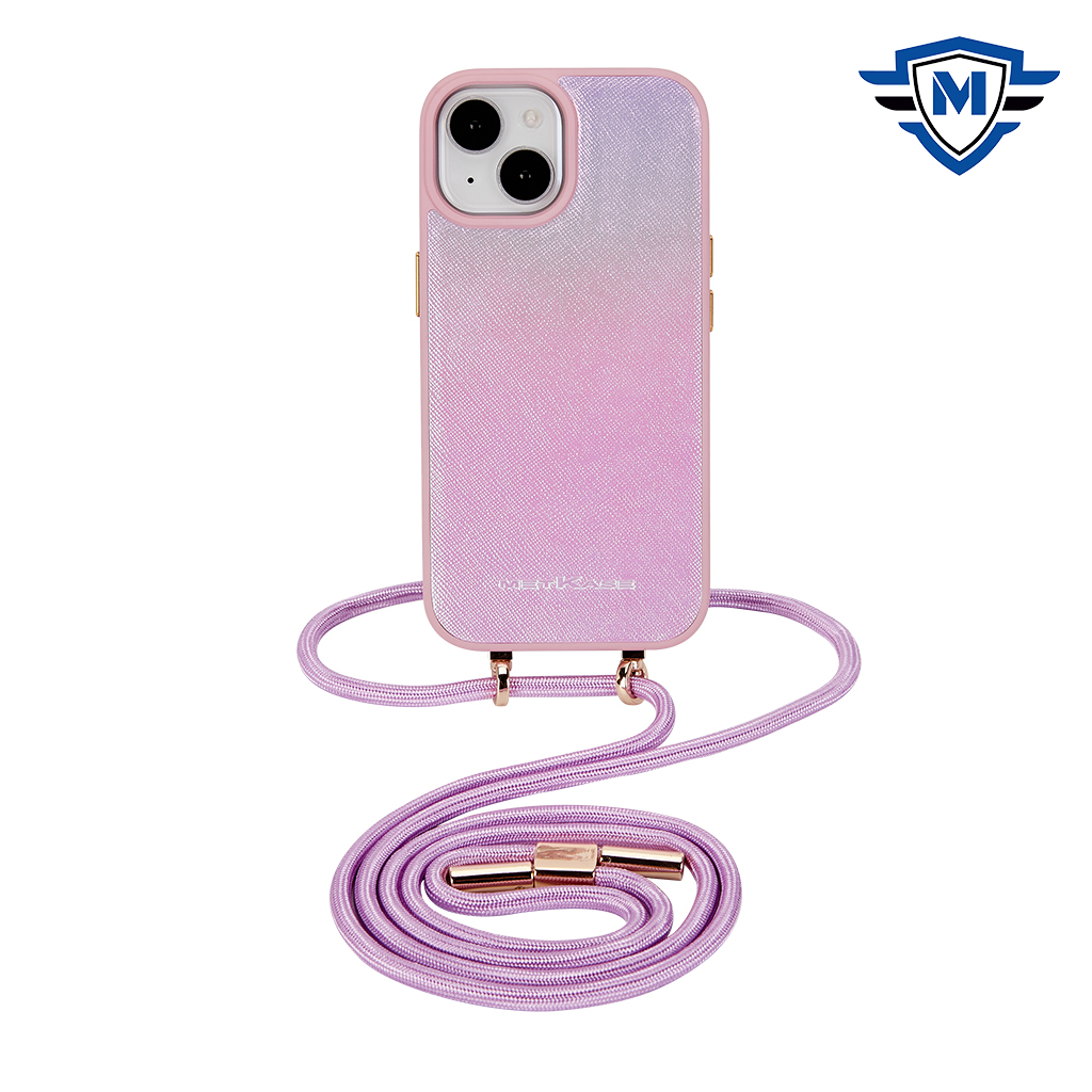 For iPhone 15 METKASE (Magnetic) Premium Two Tone Hybrid PU Leather With Lanyard - Purple