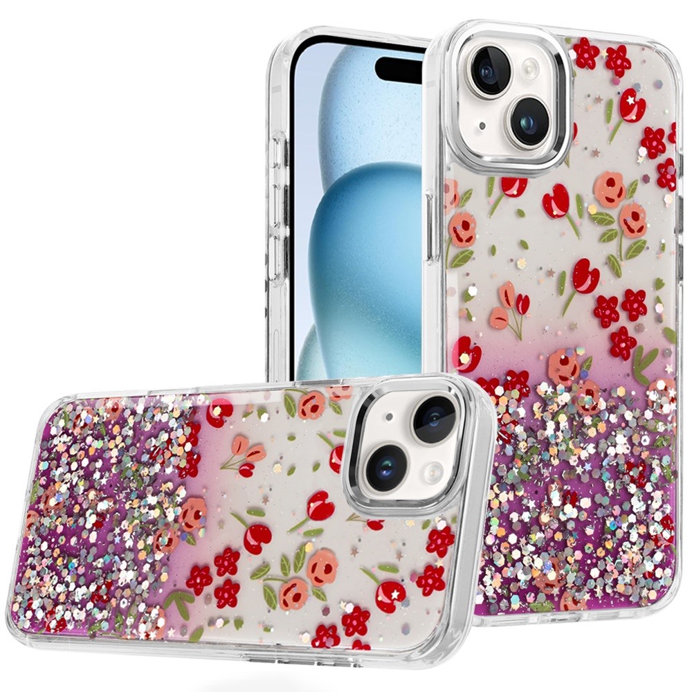 For iPhone 15 Beautiful Epoxy Designs With Chrome Metallic Edges Hybrid - 5