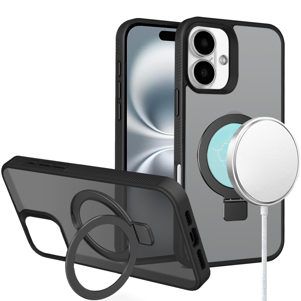 For iPhone 16 Plus 6.7 inch Skin Touch Feel HQ [Magnetic Circle] Kickstand Hybrid - Black