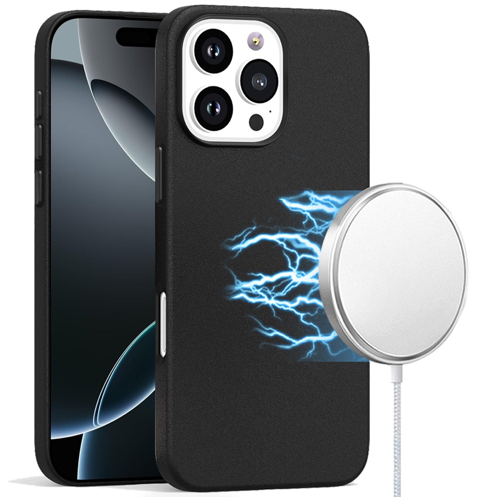 For iPhone 16 Pro 6.3 inch PU Leather with inner [Magnetic Circle] Colored Metal Buttons - Black