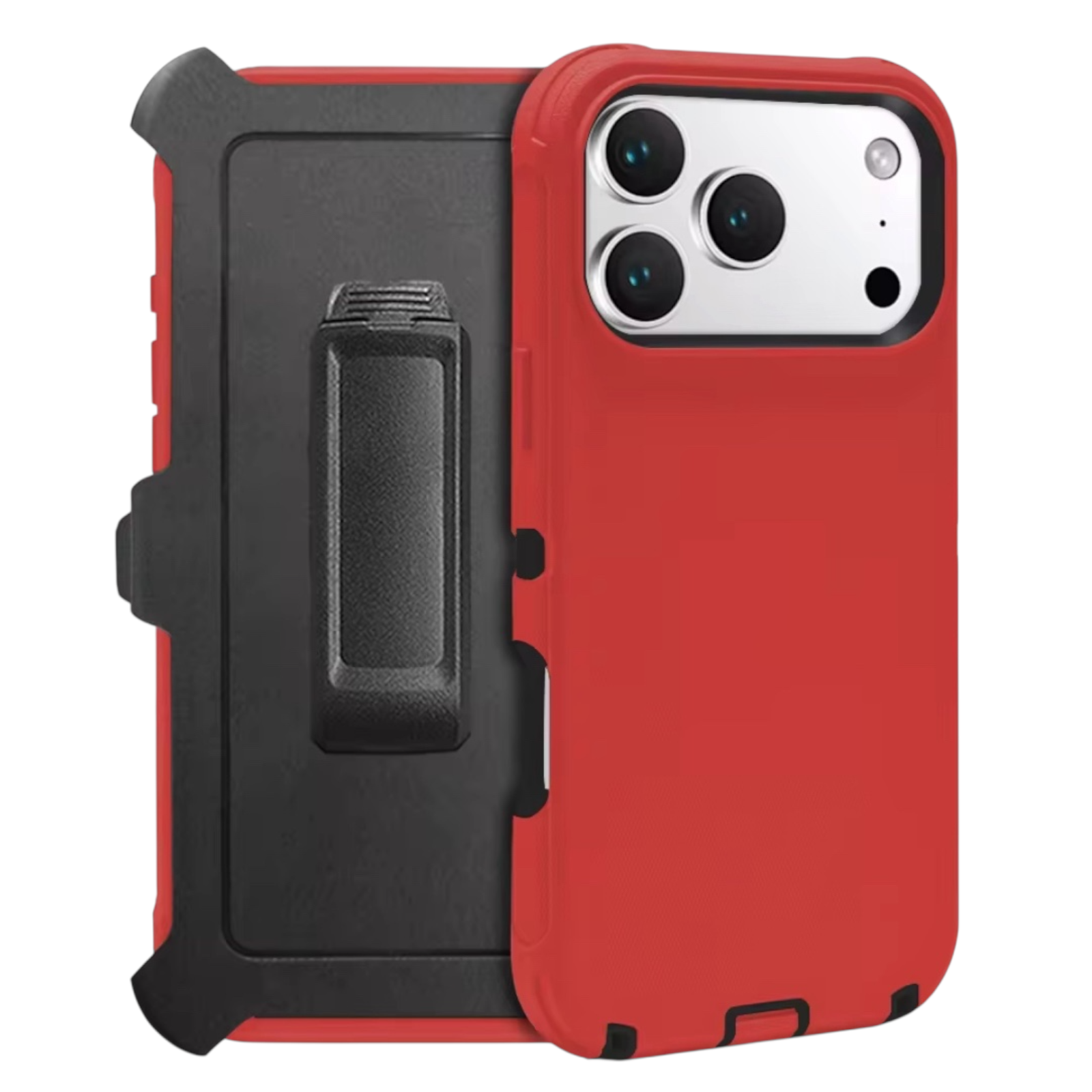 For iPhone 17 Air Rugged Armor with Belt Clip Holster - Red/Black