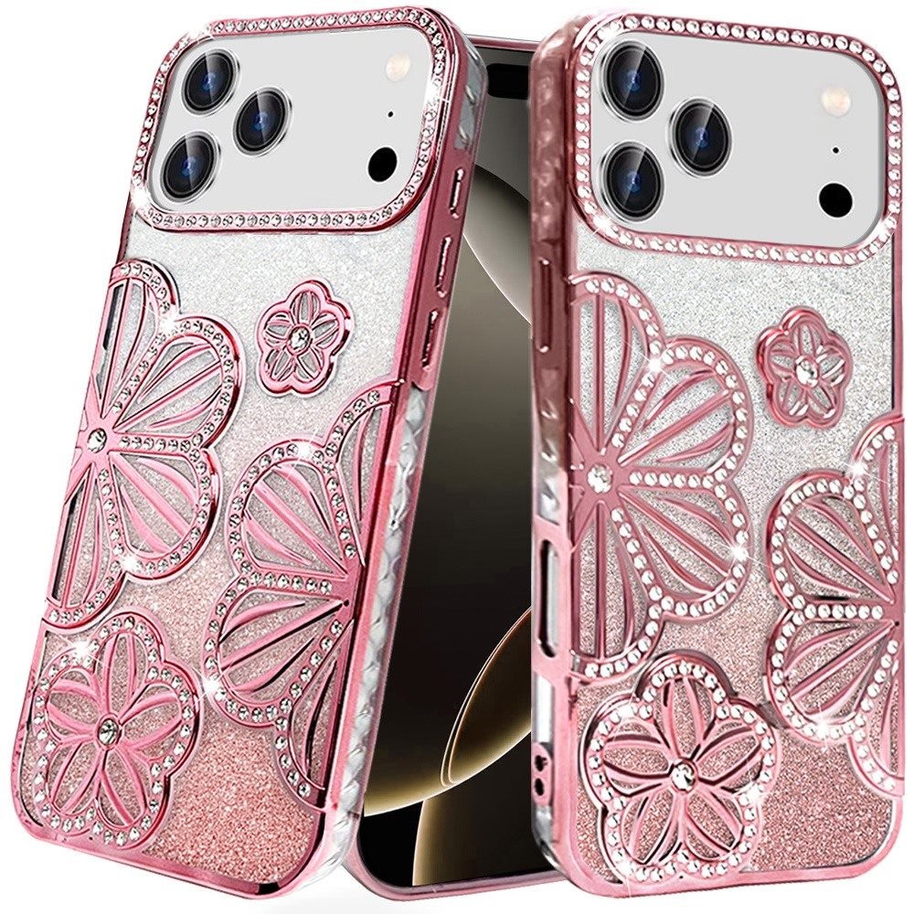 For iPhone 17 Pro Pro Shimmer Glitter Floral Design Thick TPU Case Cover -