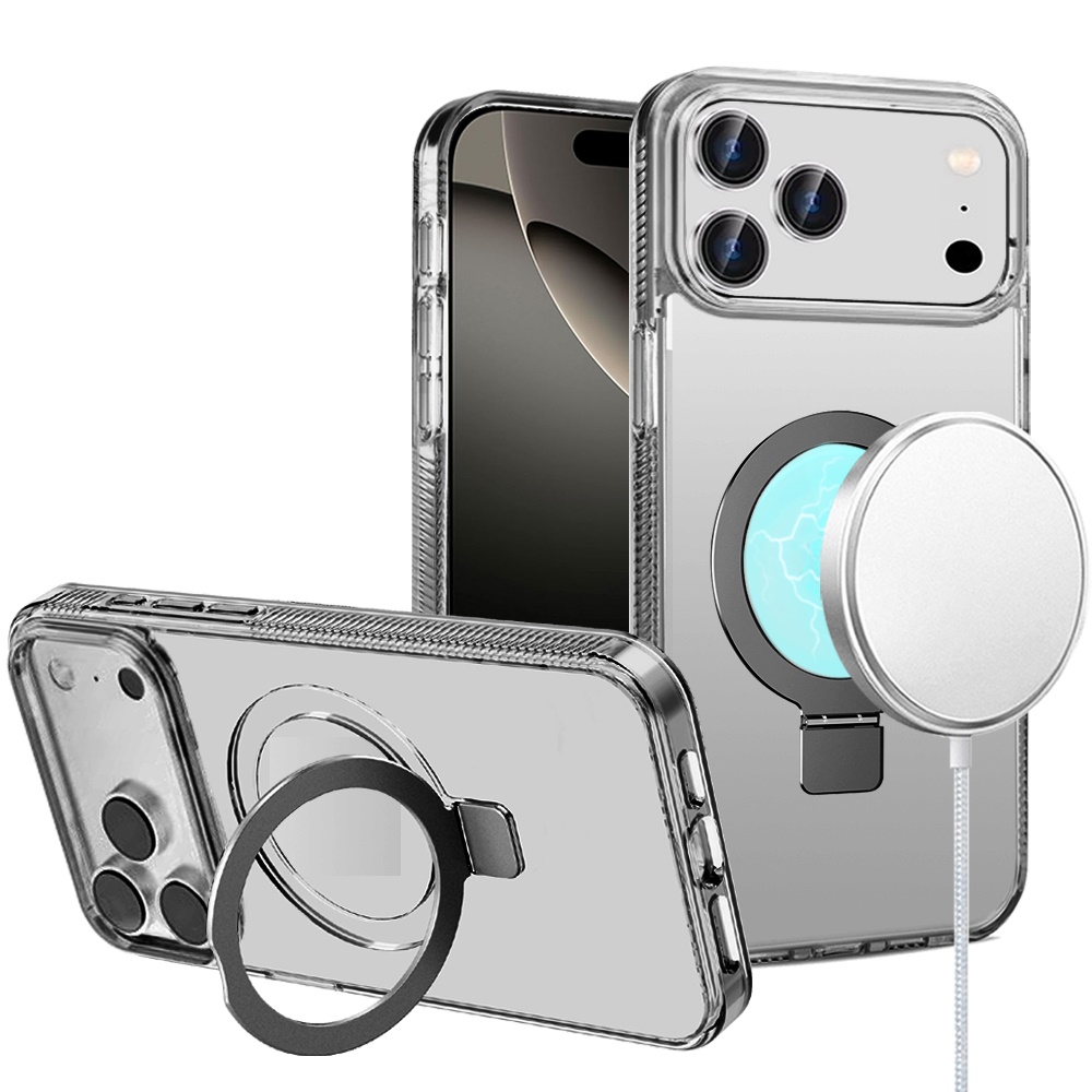 For iPhone 17 Pro Dotted Edged Line Transparent HQ Magnetic Ring Stand Hybrid - Black