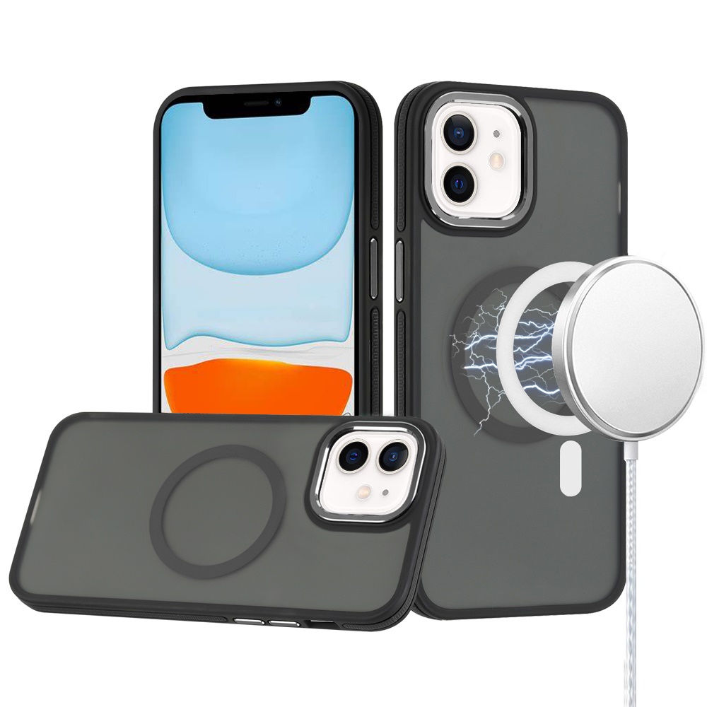 For iPhone 11 (XI6.1) Royal Magnetic Ring Skin-Touch HQ Metal Buttons/Camera Lip Hybrid - Black