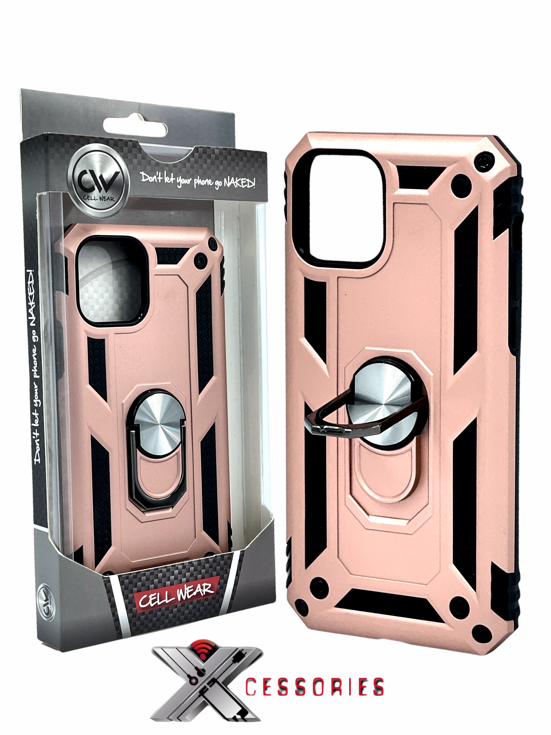 Shockproof Magentic Ring Stand Case for IPhone 11 Pro Max - Black/Pink