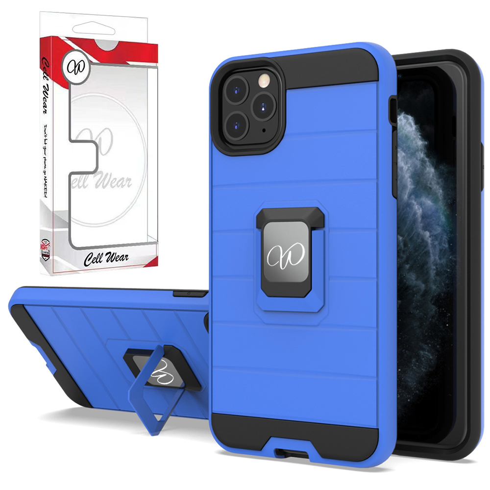 Shockproof Case Protective Magnetic Ring Kickstand Mobile Phone Case For iPhone 11 Pro Max - Blue
