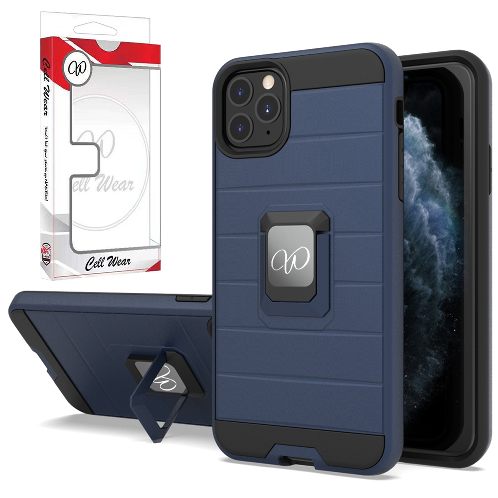 Shockproof Case Protective Magnetic Ring Kickstand Mobile Phone Case For iPhone 11 Pro Max - Navy Blue