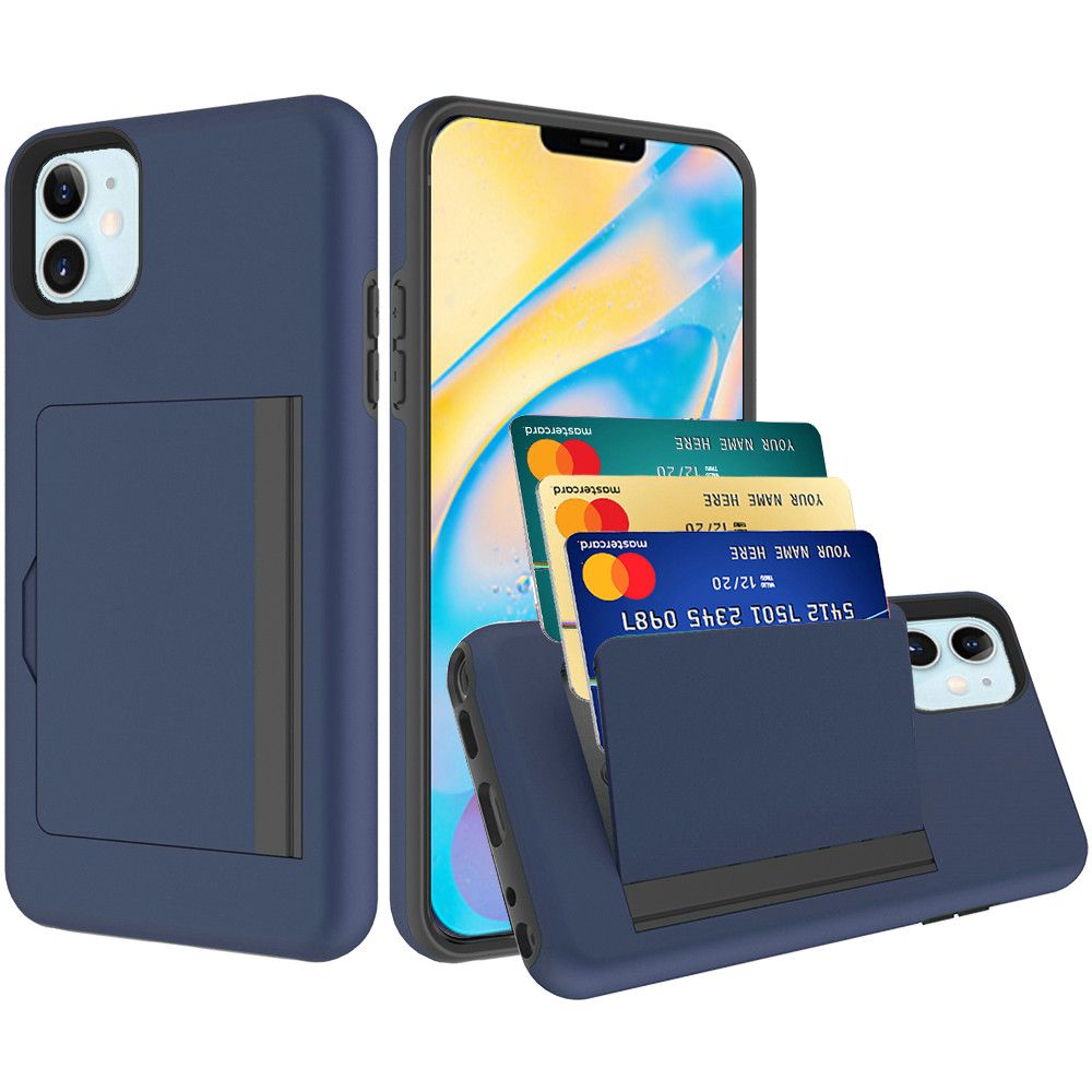Card Holder Tuff Armor Hybrid Case Cover - Blue for Iphone 12 Mini