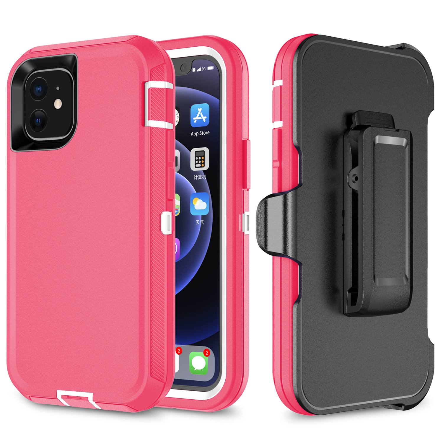 Shockproof Defender Case with Holster for IPhone 12 Mini Pink/White