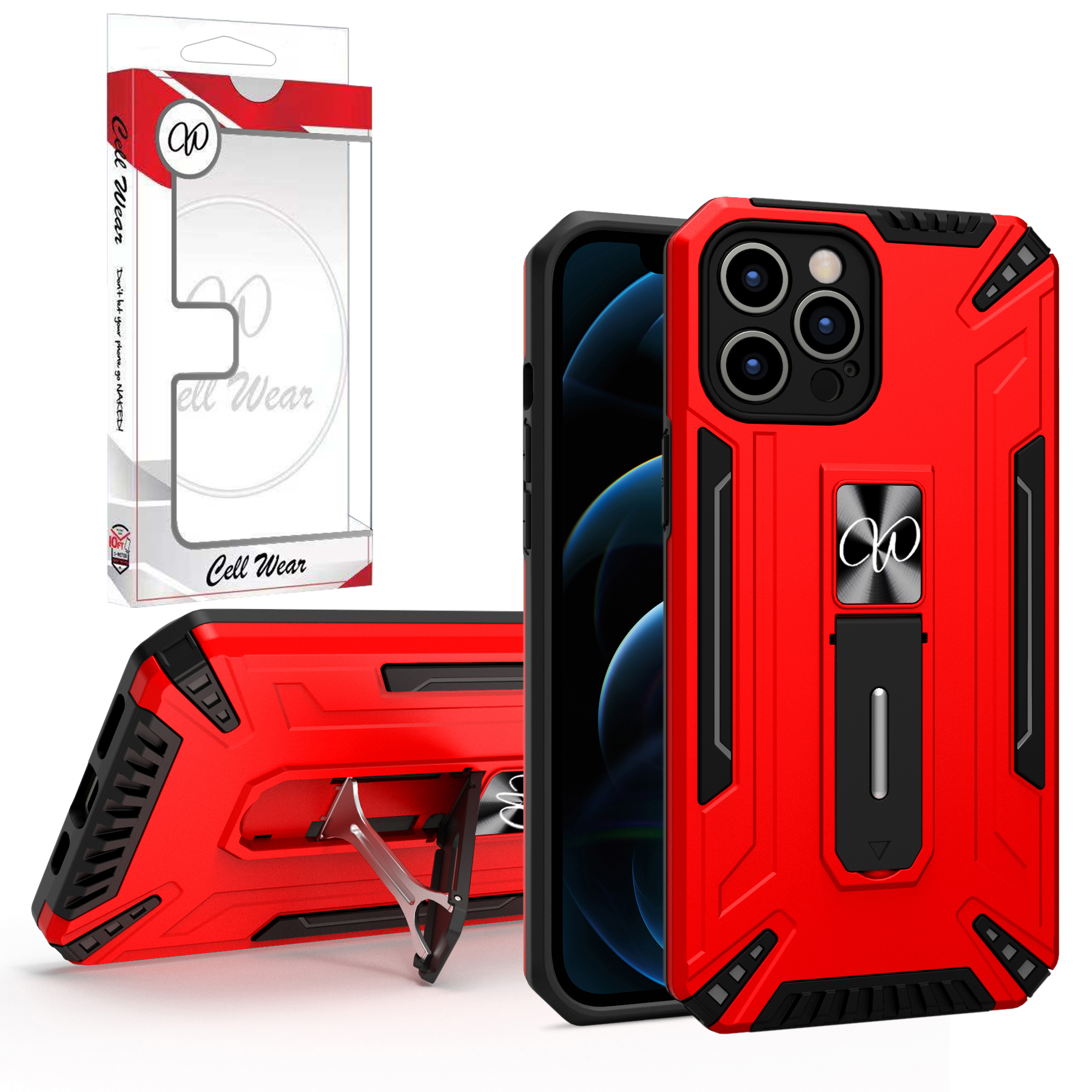 Built-In Kickstand Magnetic Mount Capability Heavy-Duty Mobile Phone Case For iPhone 12 Pro Max - Red