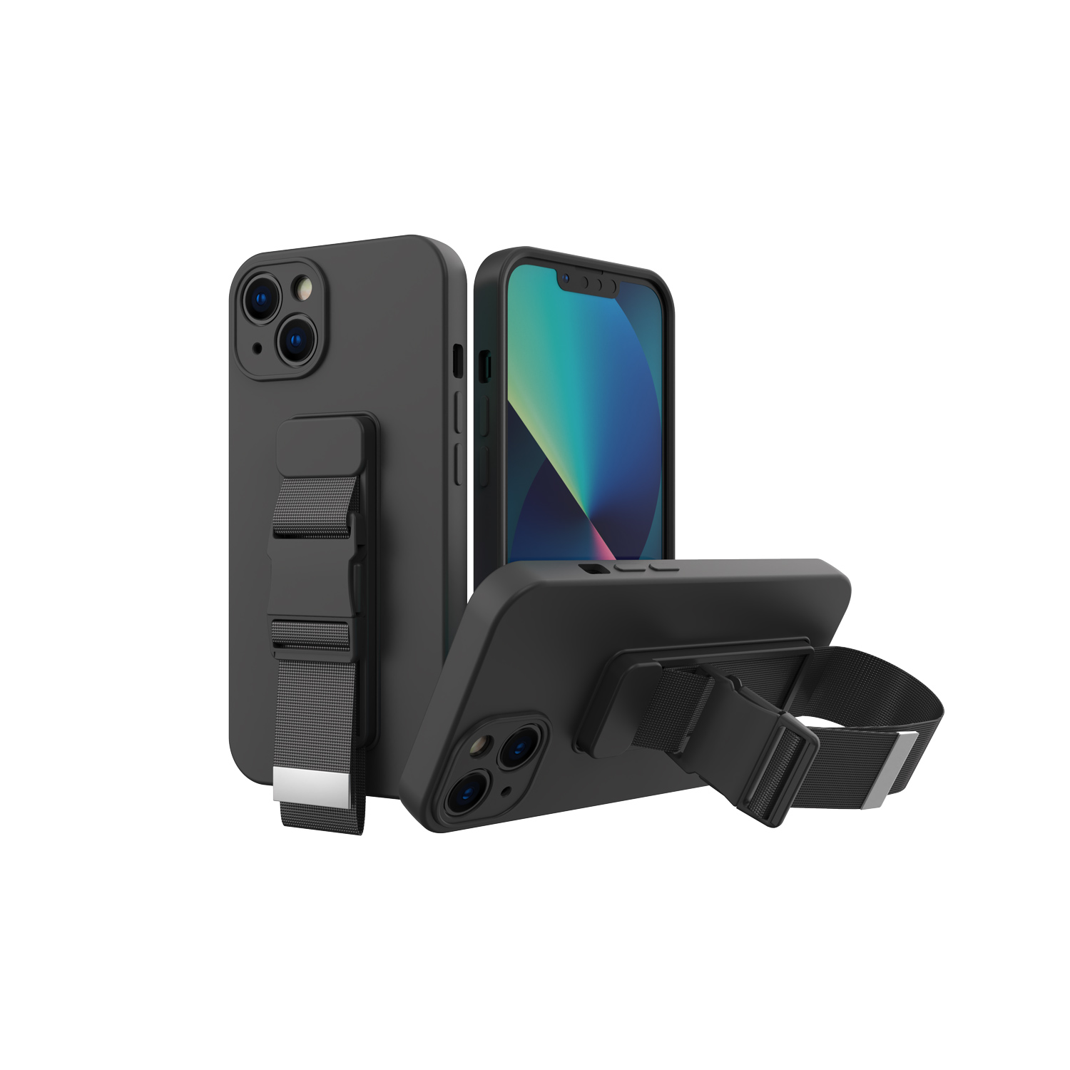 For iPhone 12 Pro Max 6.7 All Purpose Thick TPU with Adjustable Strap for Wrist Waist Case Cover - Black