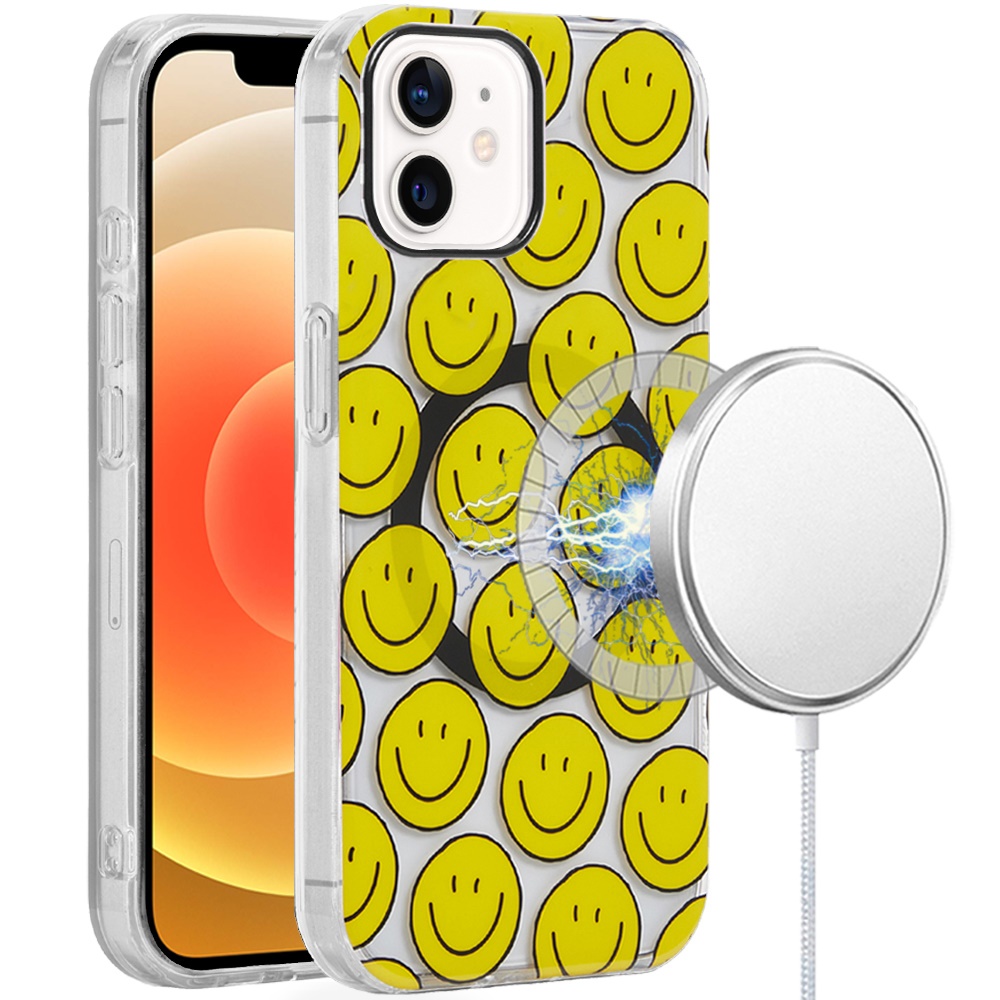 For iPhone 12 & iPhone 12 Pro [Magnetic Circle] Double Layer Design IMD TPU Case - Smiley Faces