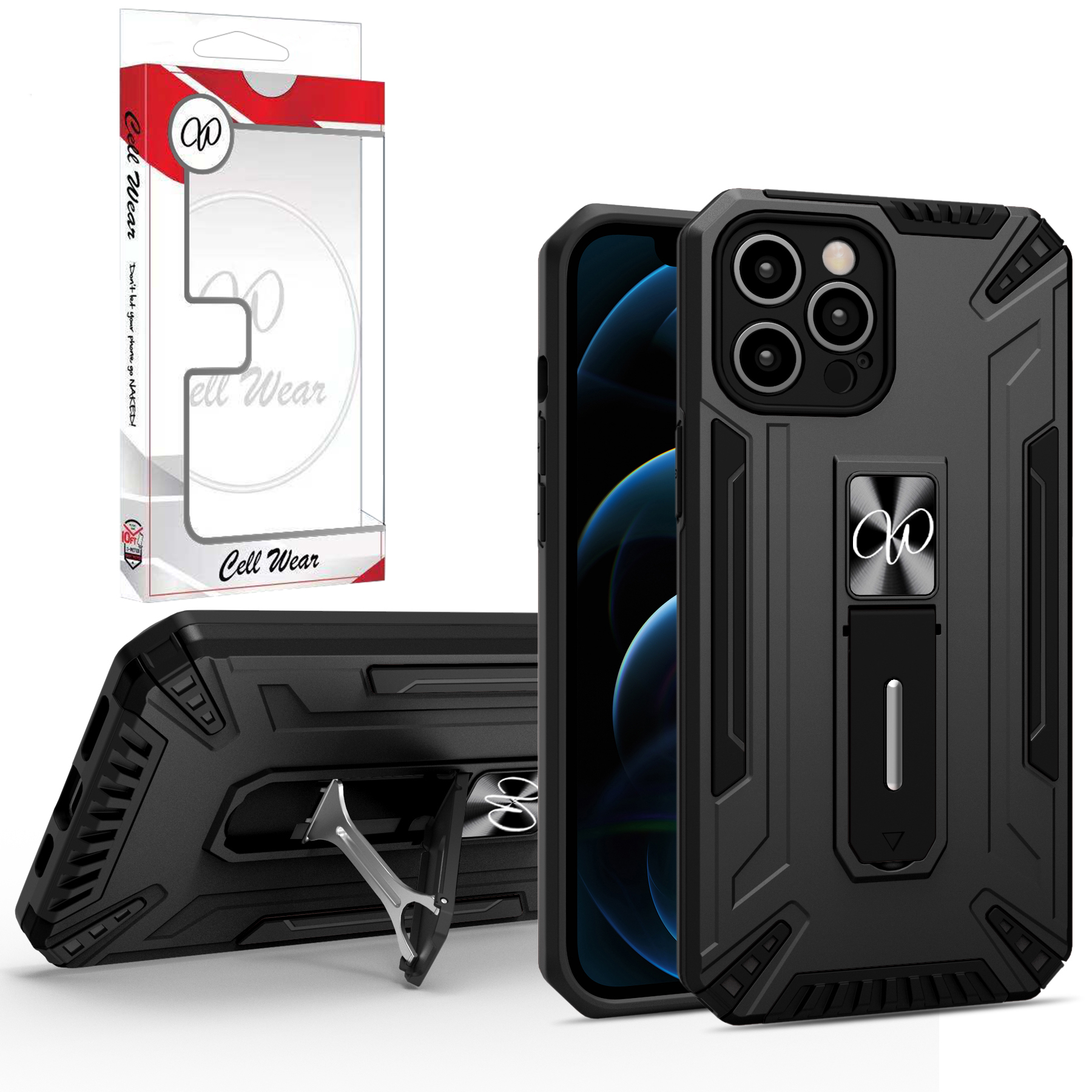 Built-In Kickstand Magnetic Mount Capability Heavy-Duty Mobile Phone Case For iPhone 12 Pro - Black