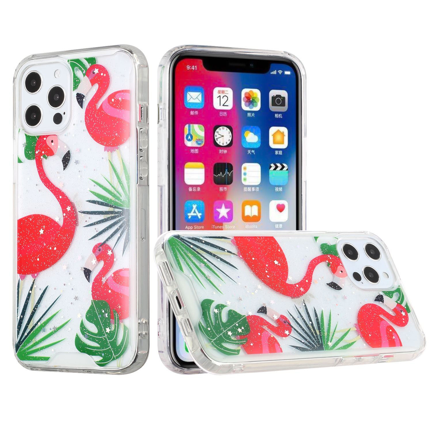 For iPhone 12 & iPhone 12 Pro (Open Camera Hole) Vogue Epoxy Glitter Hybrid Case Cover - Flamingo