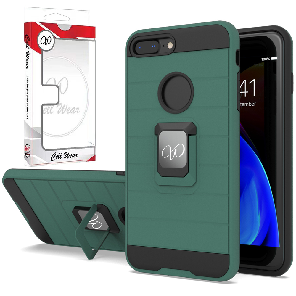 Shockproof Case Protective Magnetic Ring Kickstand Mobile Phone Case For iPhone 7+/8+ - Midnight Green