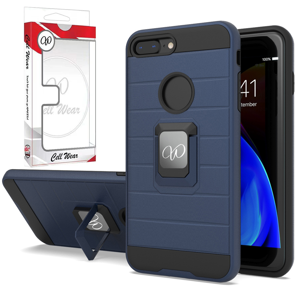 Shockproof Case Protective Magnetic Ring Kickstand For iPhone 7+/8+ - Navy