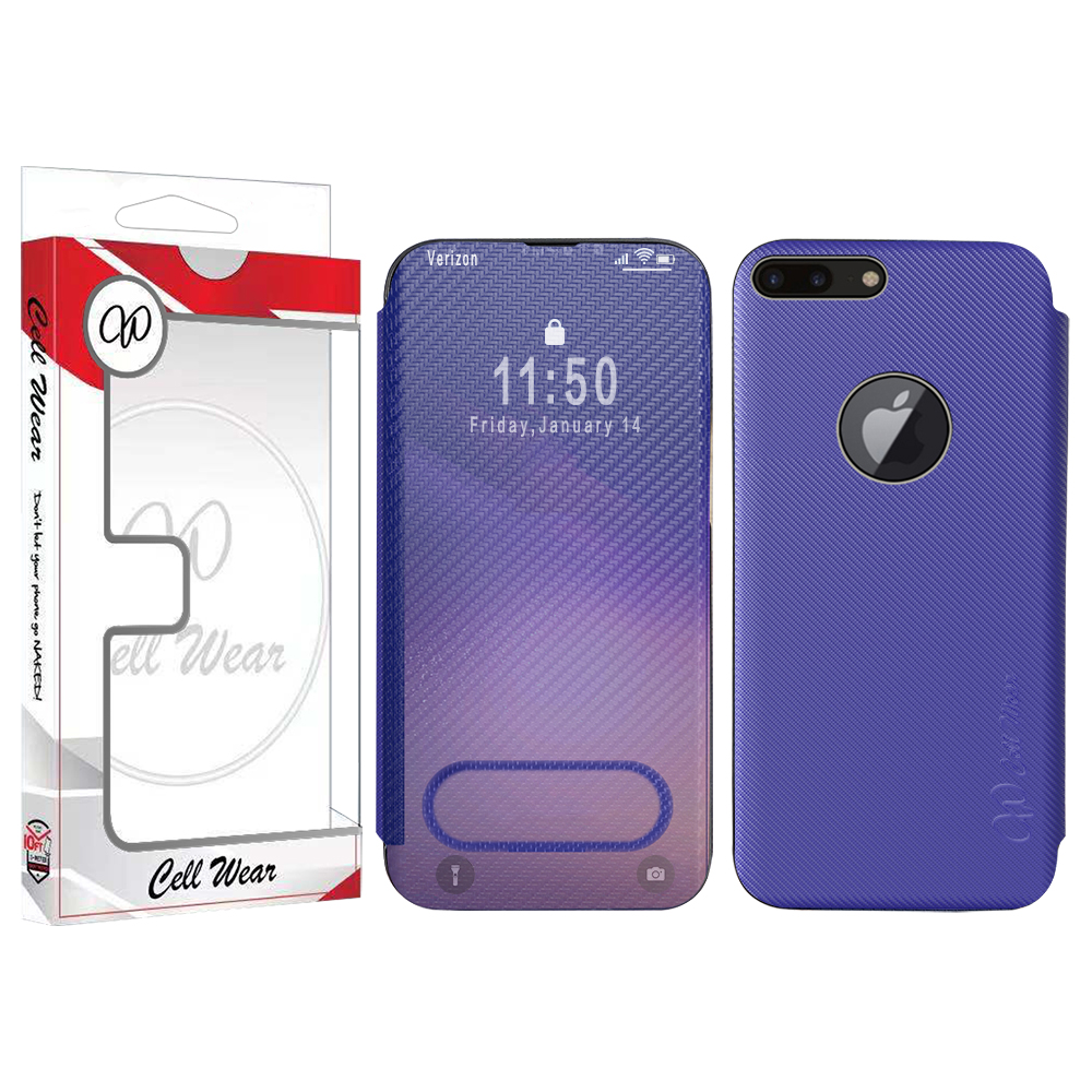 Carbon Fiber Touch Enabled Portfolio Case-Blue-For iPhone 7+/8+