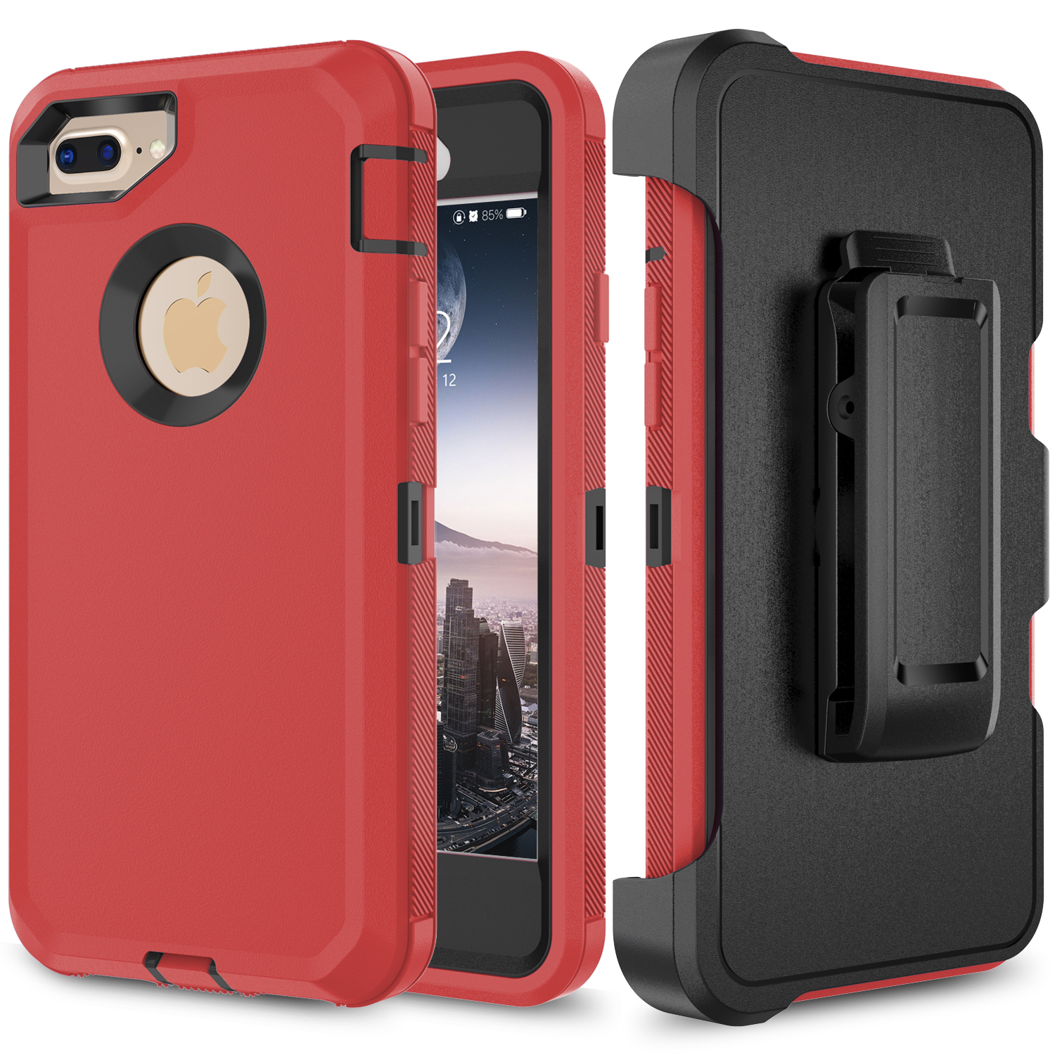 Shockproof Defender Case with Holster for IPhone 6/7/8 Plus -Red