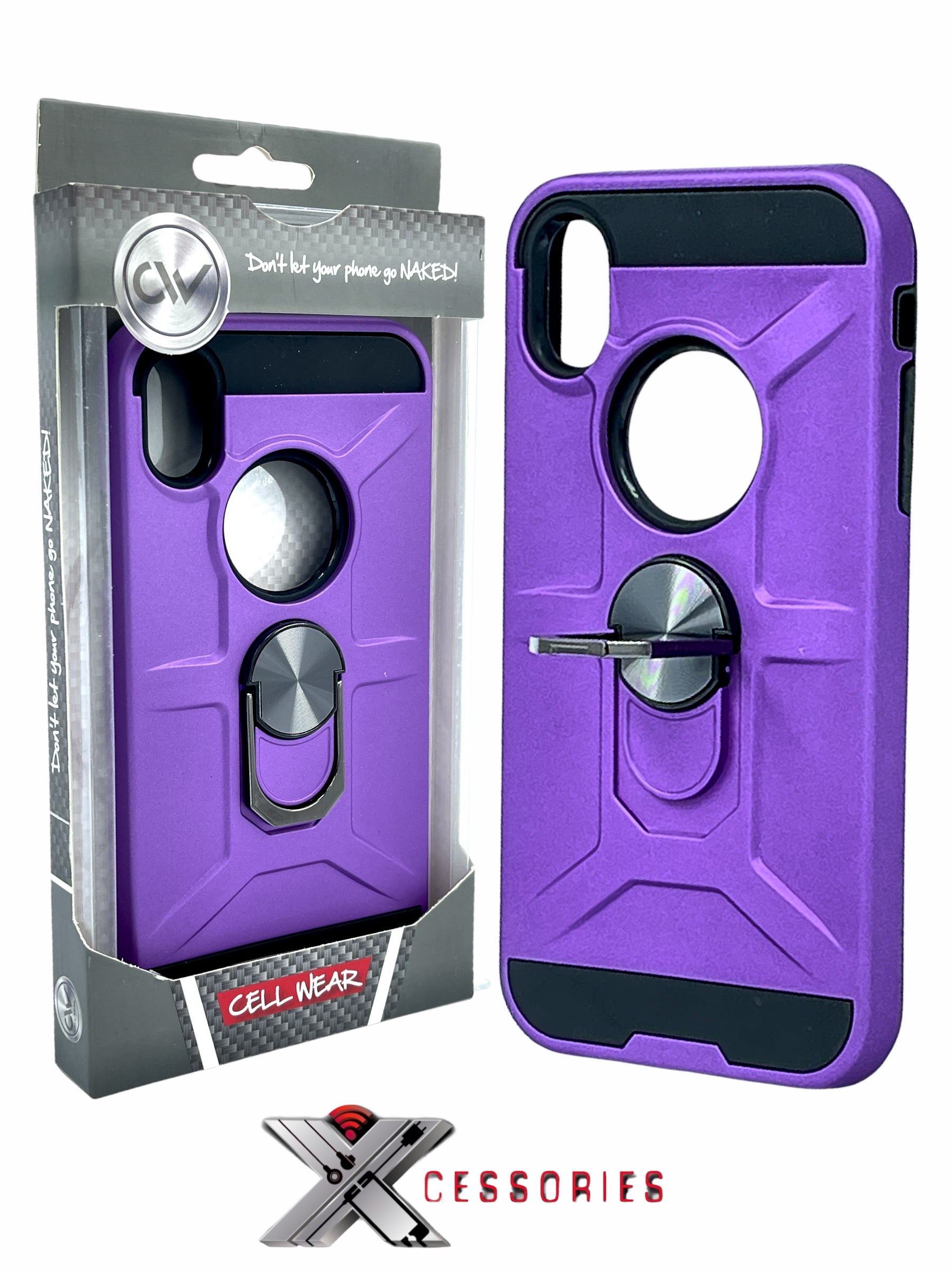 Shockproof Magnetic Ring stand case for IPhone X/XS - Purple/Black